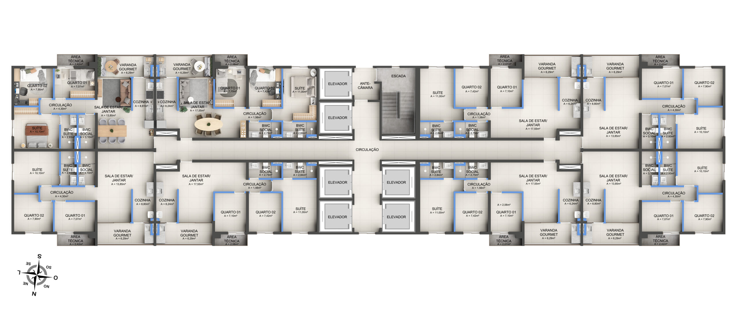 • 39 pavimentos: (térreo + pilotis 1 + pilotis 2 + 36 pavimentos tipos)